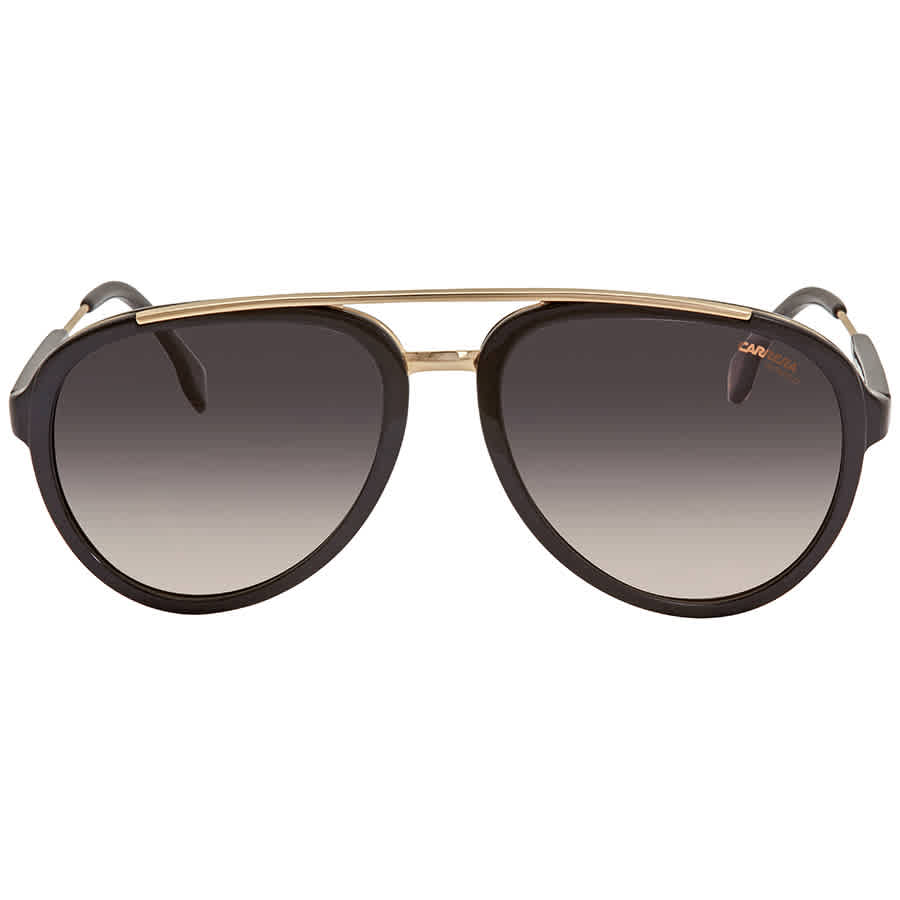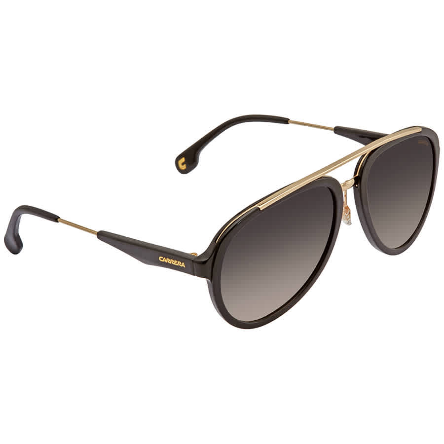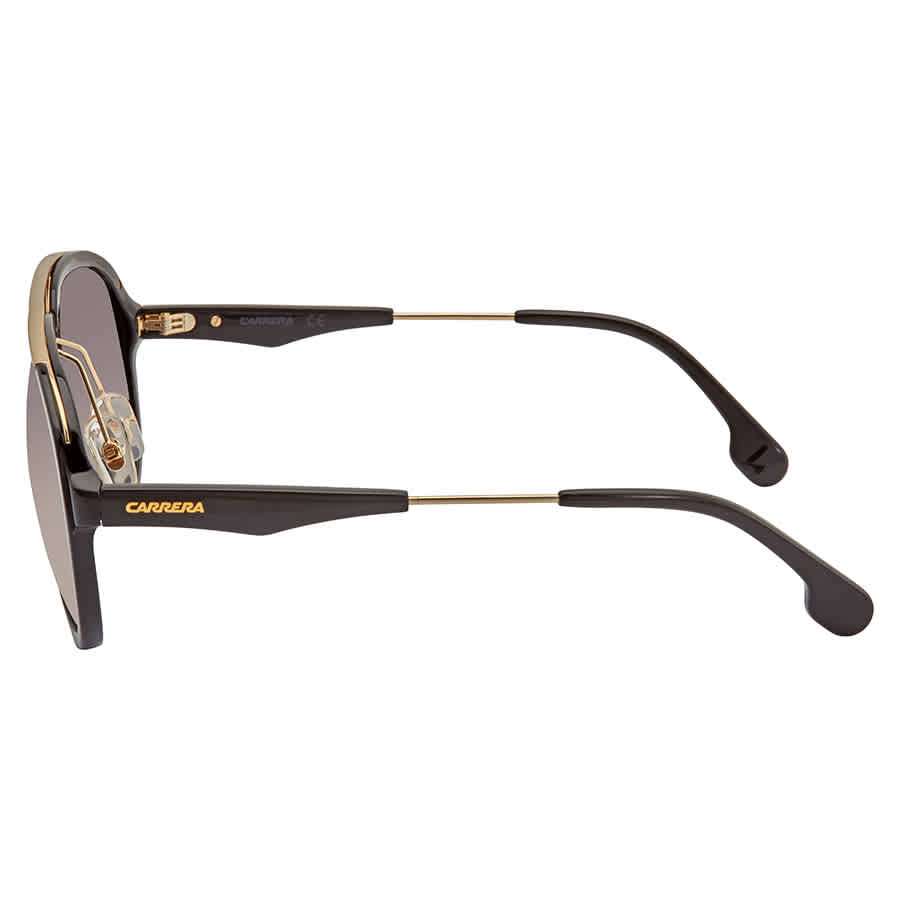 Carrera Sunglasses. Series CA132. Color code: 02M2 PR. Shape: Sunglasses. Lens Width: 57 mm. Lens Bridge: 18 mm. Arm Length: 140 mm. 100% UV protection. Non-Polarized. Frame Material: Plastic. Frame Color: Black Gold. Lenses Type: Gray Brown. UPC/EAN code: 762753581990. Carrera Gray Brown Sunglasses Mens Sunglasses CARRERA132 2M2PR 57.