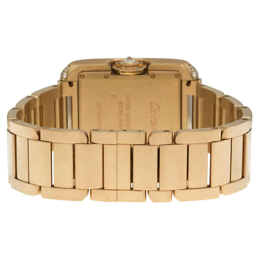 18kt pink gold and diamonds case with a 18kt pink gold bracelet. Fixed set with diamonds bezel. Silver dial with sword shaped blue steel hands and Roman numeral hour markers. Minute markers around the inner rim. Dial Type: Analog. Date display at the 3 o'clock position. Automatic movement. Scratch resistant sapphire crystal. Set with diamond crown. Case diameter: 39.2mm x 29.8mm. Rectangle case shape. Deployment with push button clasp. Water resistant at 30 meters / 100 feet. Functions: date, hour, minute, second. Luxury watch style. Watch label: Swiss Made. Cartier Tank Anglaise Silver Dial 18kt Pink Gold Mens Watch WT100003.