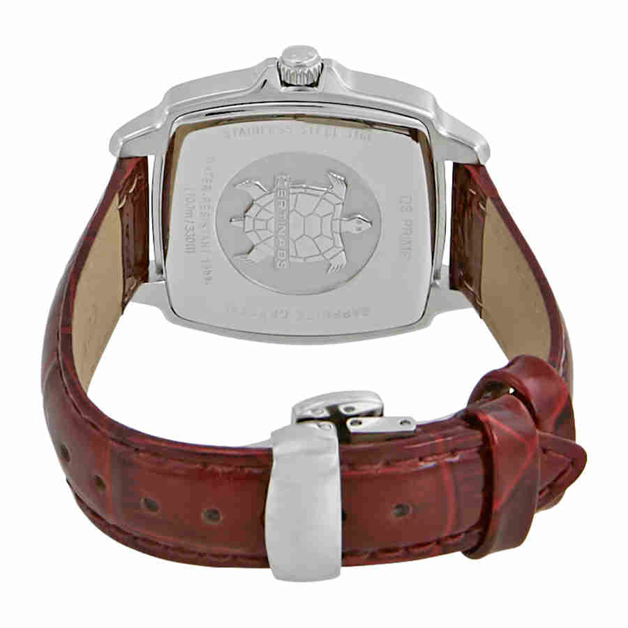 Stainless steel case with a red (calfskin) leather strap. Fixed stainless steel bezel. White mother of pearl dial with luminous hands and index hour markers. Minute markers around the outer rim. Dial Type: Analog. Luminescent hands and markers. Date display at the 6 o'clock position. ETA caliber F06.411 quartz movement. Scratch resistant sapphire crystal. Pull / push crown. Solid case back. Square case shape. Case size: 32.75 mm. Case thickness: 10 mm. Band width: 21 mm. Tang clasp. Water resistant at 100 meters / 330 feet. Functions: date, hour, minute, second. Additional Info: 3 diamonds at 12 o'clock. Dress watch style. Watch label: Swiss Made. Certina DS Prime Shape White Mother of Pearl Dial Ladies Watch C028.310.16.426.00.