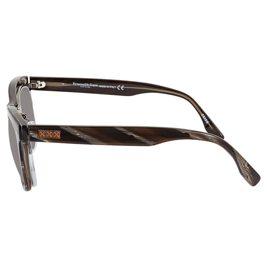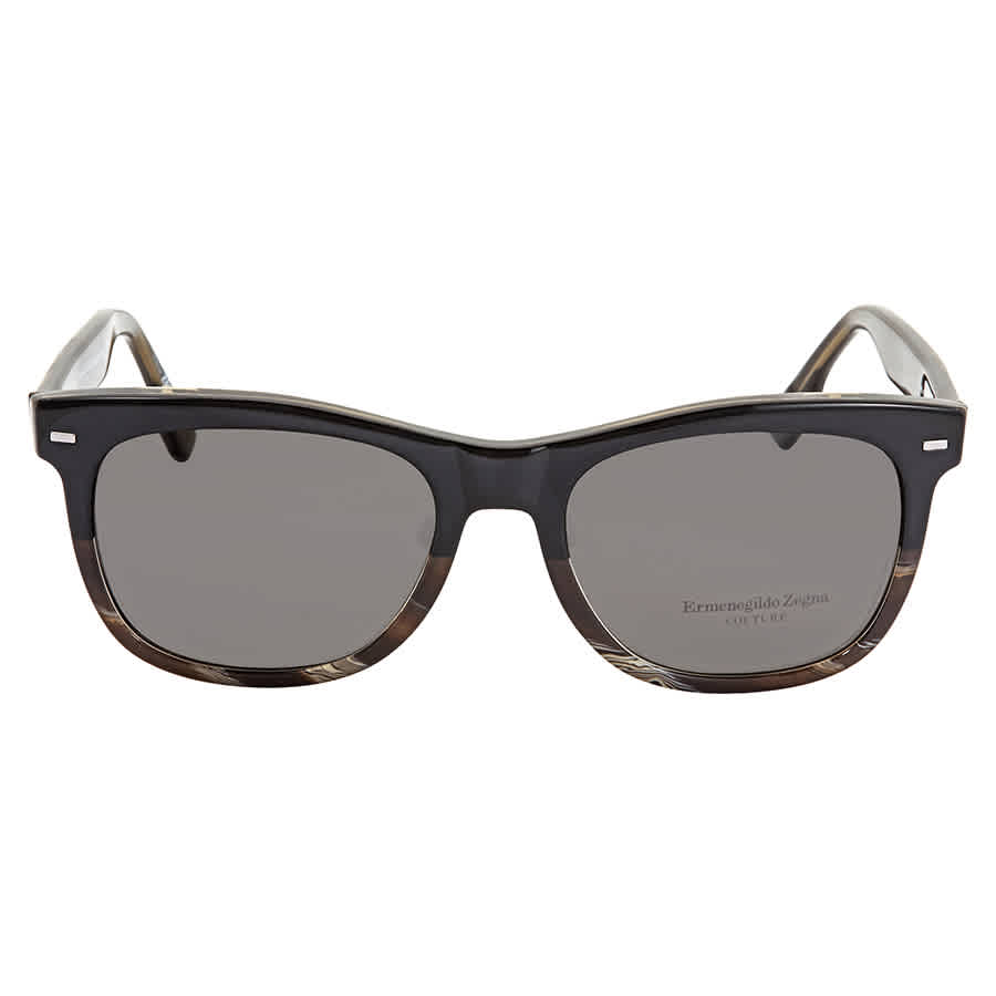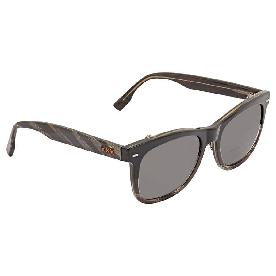 Ermenegildo Zegna Sunglasses. Series number: ZC0001. Color code: 05D. Shape: Square. Lens Width: 55 mm. Lens Bridge: 19 mm. Arm Length: 145 mm. 100% UV protection. Polarized. Frame Material: Acetate. Frame Color: Striped Grey. Lenses Type: Grey Polarized. UPC/EAN code: 664689662791. Ermenegildo Zegna Grey Polarized Square Mens Sunglasses ZC000105D55.