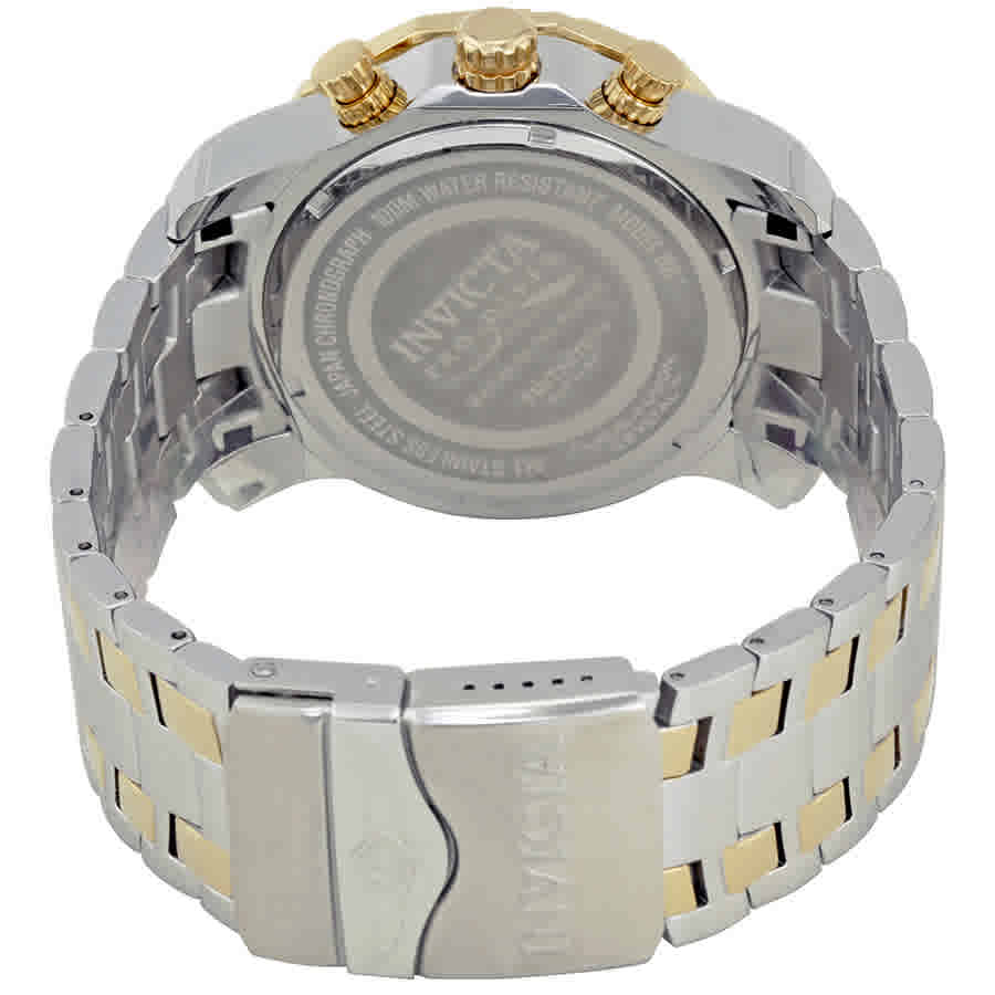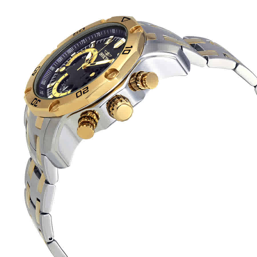 Stainless steel case with a two-tone (silver and yellow gold-plated) stainless steel bracelet. Uni-directional rotating yellow gold-plated bezel. Black dial with luminous yellow gold-tone hands and index hour markers. Minute markers....