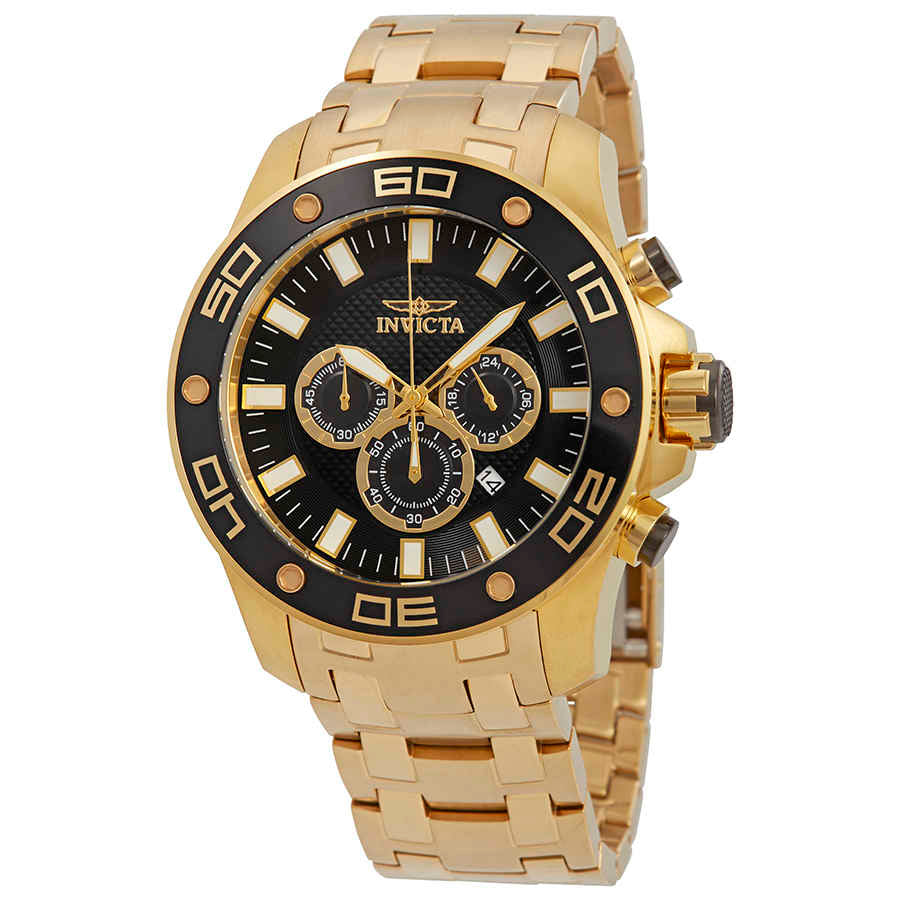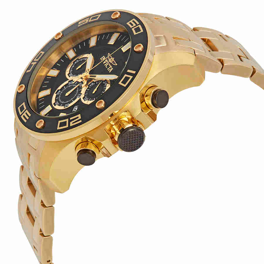 Yellow gold-tone stainless steel case with a yellow gold-tone stainless steel bracelet. Uni-directional rotating yellow gold-tone stainless steel with a black aluminum bezel. Black dial with luminous yellow gold-tone hands and...