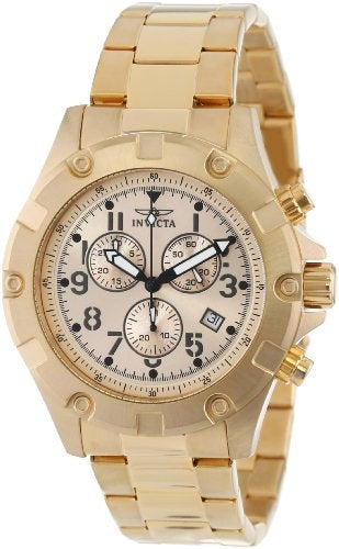 18k gold ion-plated stainless steel case abs bracelet. Uni-directional rotating 18kt gold ion-plated bezel. Champagne dial with luminous black hands and Arabic numeral hour markers. Minute markers around the outer rim....