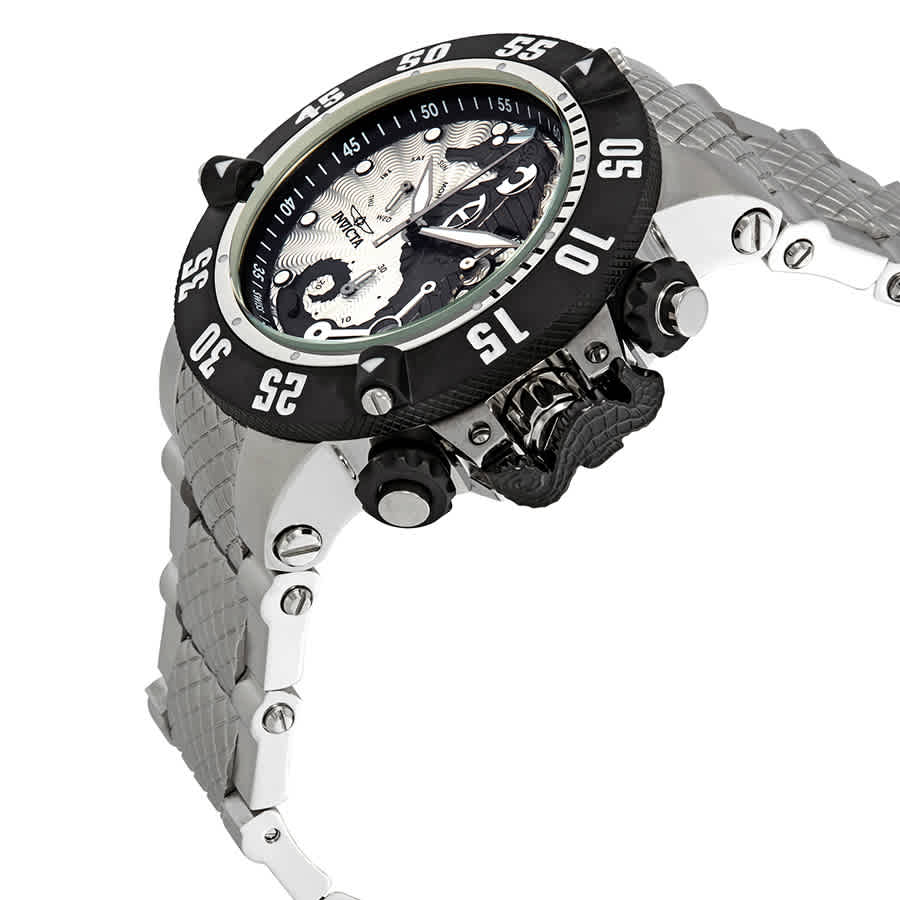 Silver-tone stainless steel case with a silver-tone stainless steel bracelet. Uni-directional rotating black stainless steel bezel. Silver-tone dial with silver-tone hands and dot hour markers. Minute markers around the outer rim....