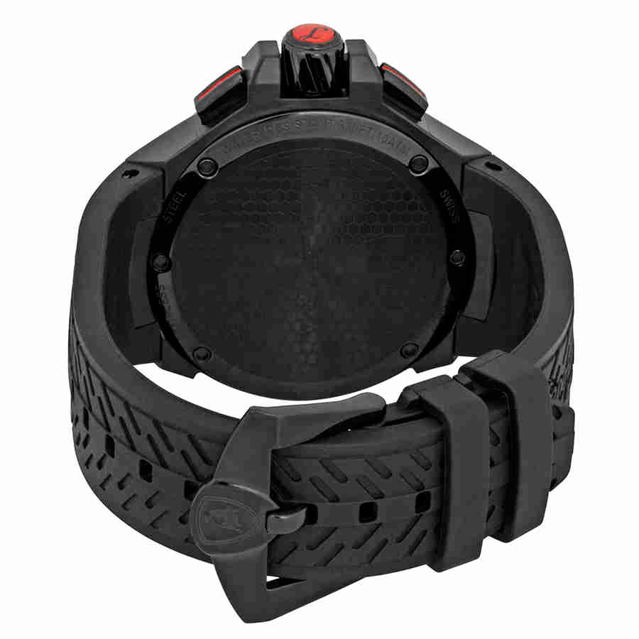 Lamborghini Tyre Chronograph Black Dial Black Rubber Mens Watch 03