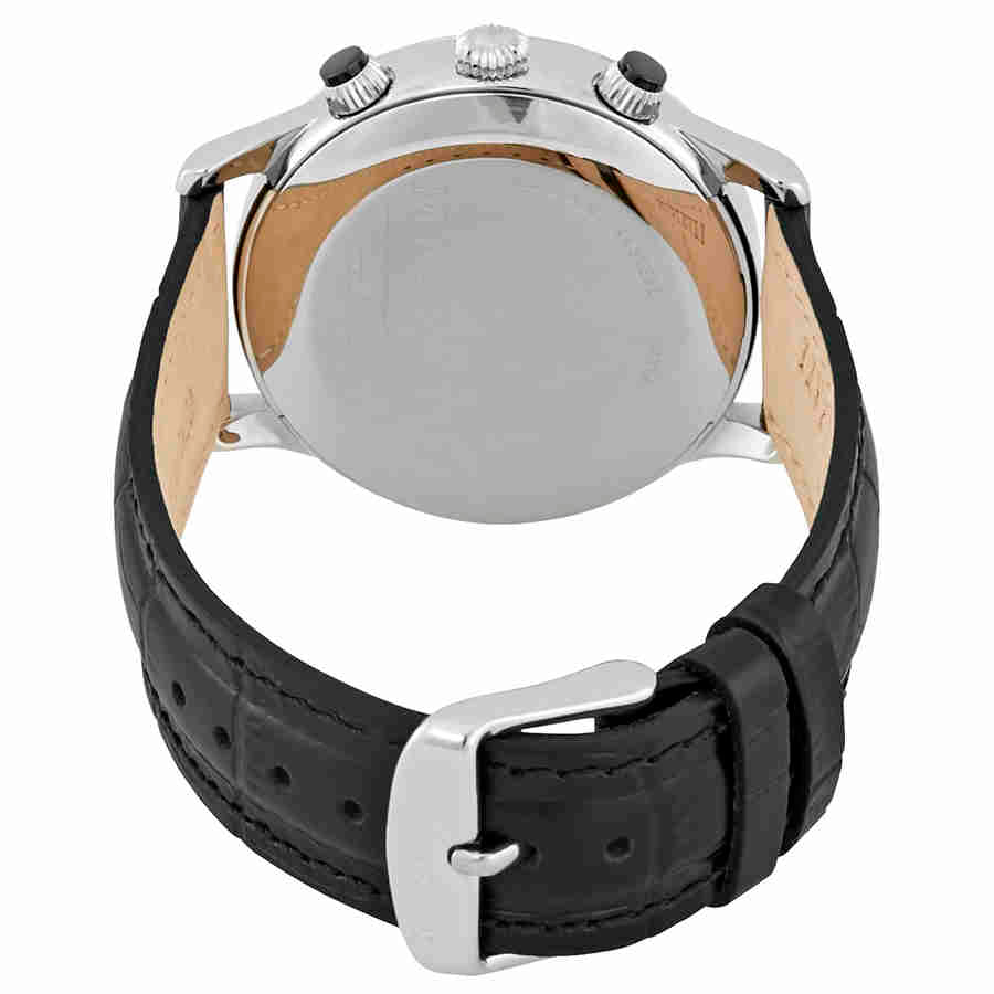 Stainless steel case with a black leather strap. Fixed stainless steel bezel. White dial with luminous rose gold-tone hands and index hour markers. Minute markers around the outer rim. Dial Type:...