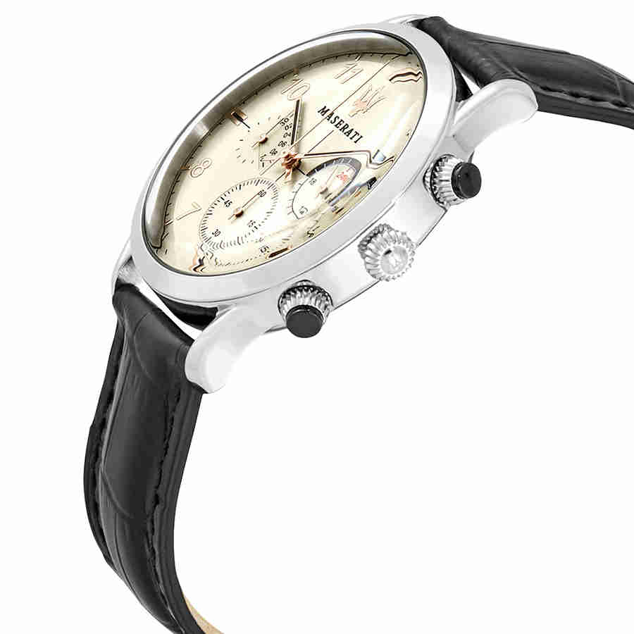 Maserati Ricordo White Dial Black Leather Mens Watch R8871625006
