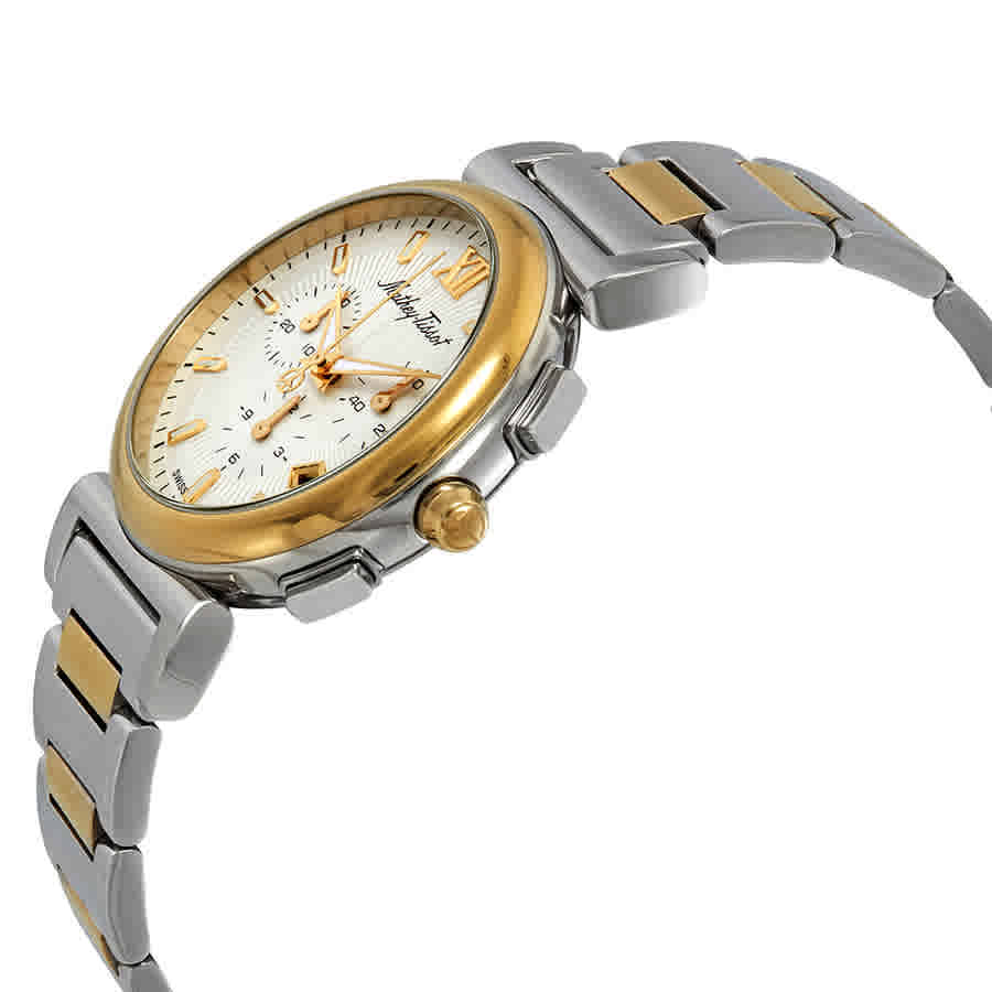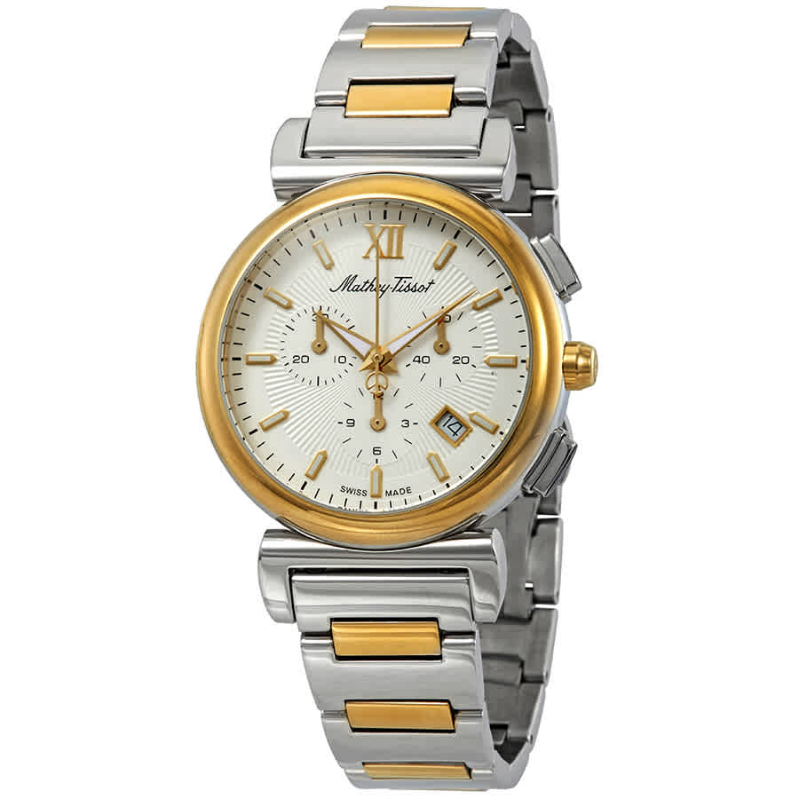 Gold-tone stainless steel case with a two-tone (silver-tone and gold-tone) stainless steel bracelet. Fixed gold-tone stainless steel bezel. Cream dial with gold-tone hands and index hour markers. Minute markers around the...