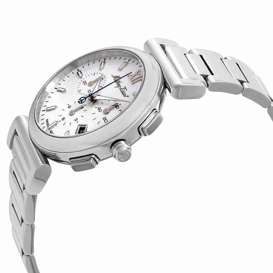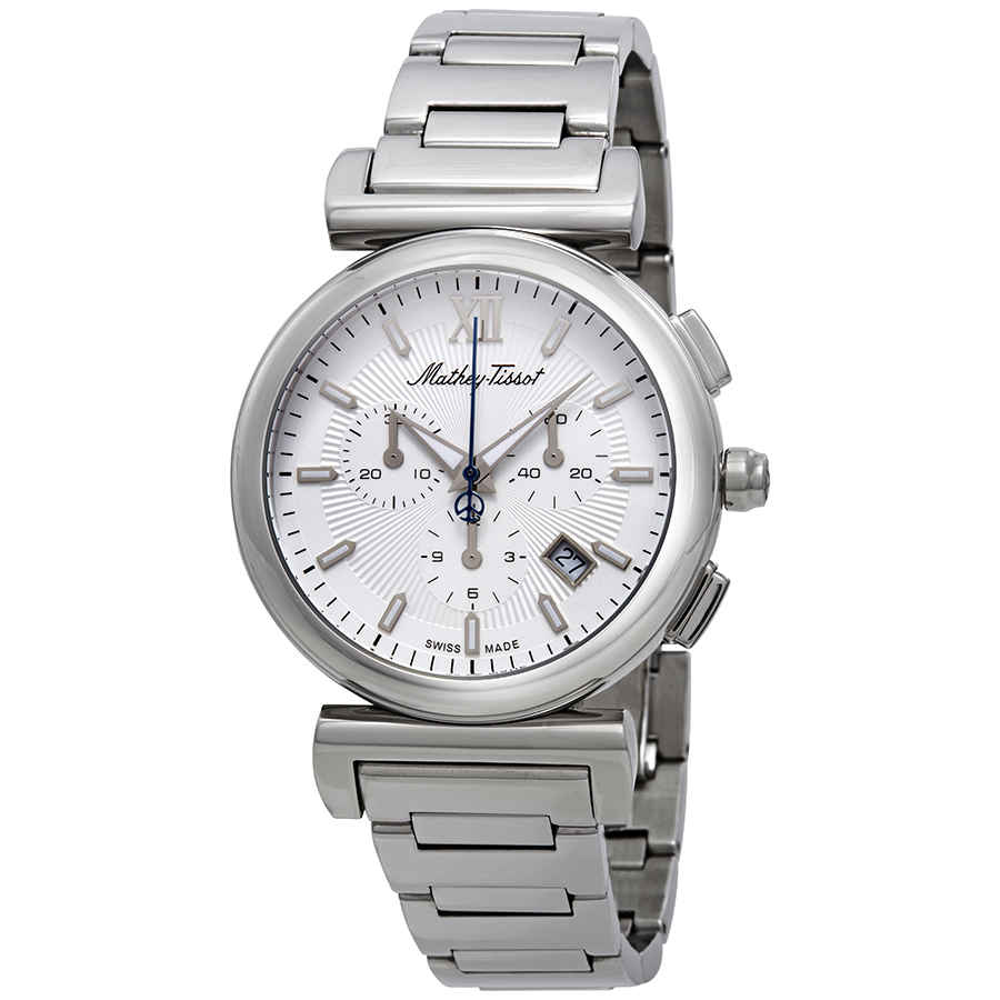 Silver-tone stainless steel case with a silver-tone stainless steel bracelet. Fixed silver-tone stainless steel bezel. White dial with silver-tone hands and Roman numeral and index hour markers. Minute markers around the...