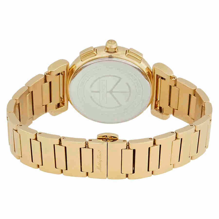Yellow gold PVD stainless steel case with a yellow gold PVD stainless steel bracelet. Fixed yellow gold PVD stainless steel bezel. White dial with gold-tone hands and Roman numeral and index...