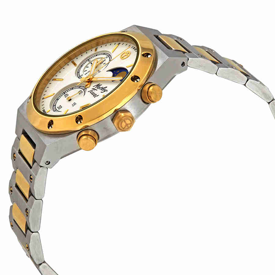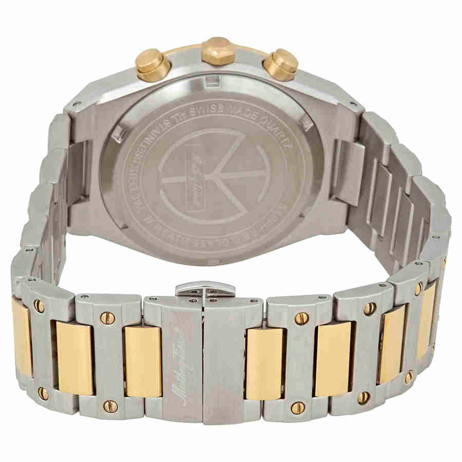 Silver-tone stainless steel case with a silver-tone and yellow gold-plated stainless steel bracelet. Fixed yellow gold-plated stainless steel bezel. White dial with luminous yellow gold-tone hands and index hour markers. Minute...