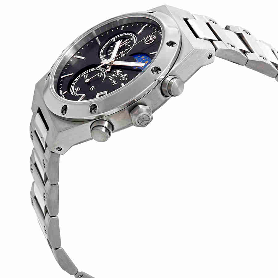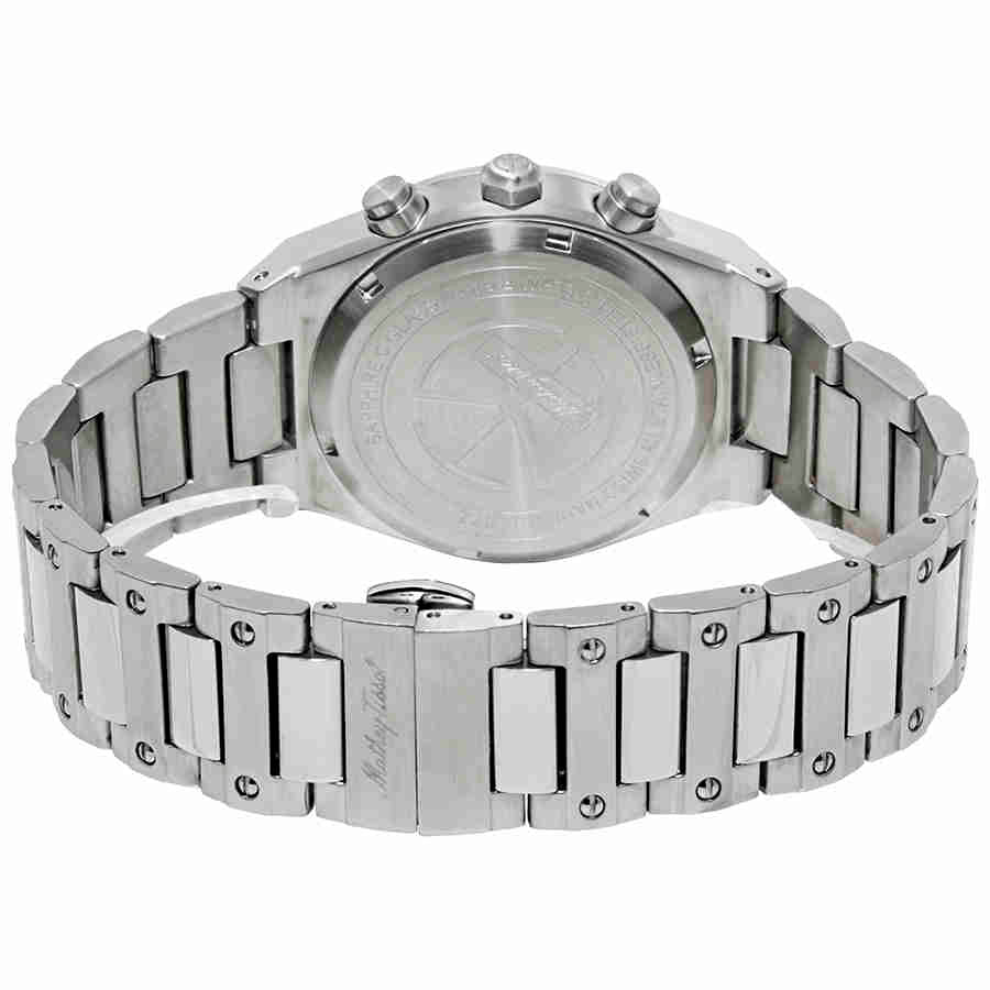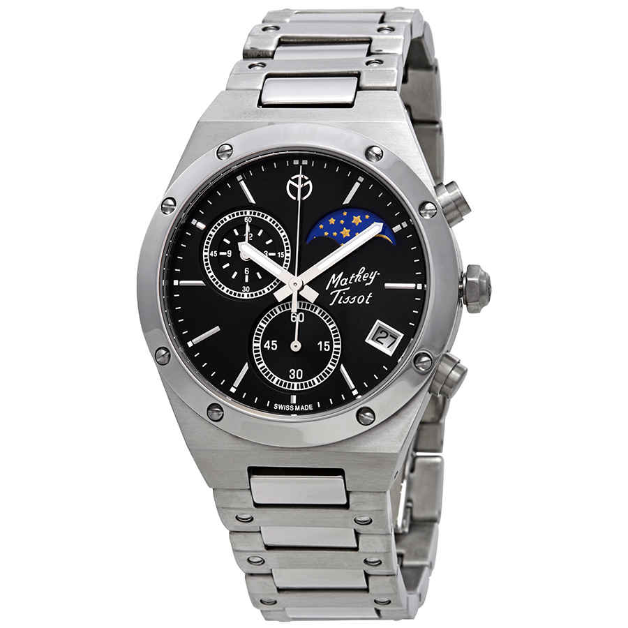 Silver-tone stainless steel case with a silver-tone stainless steel bracelet. Fixed silver-tone stainless steel bezel. Black dial with gold-tone hands and index hour markers. Minute markers around the outer rim. Dial...
