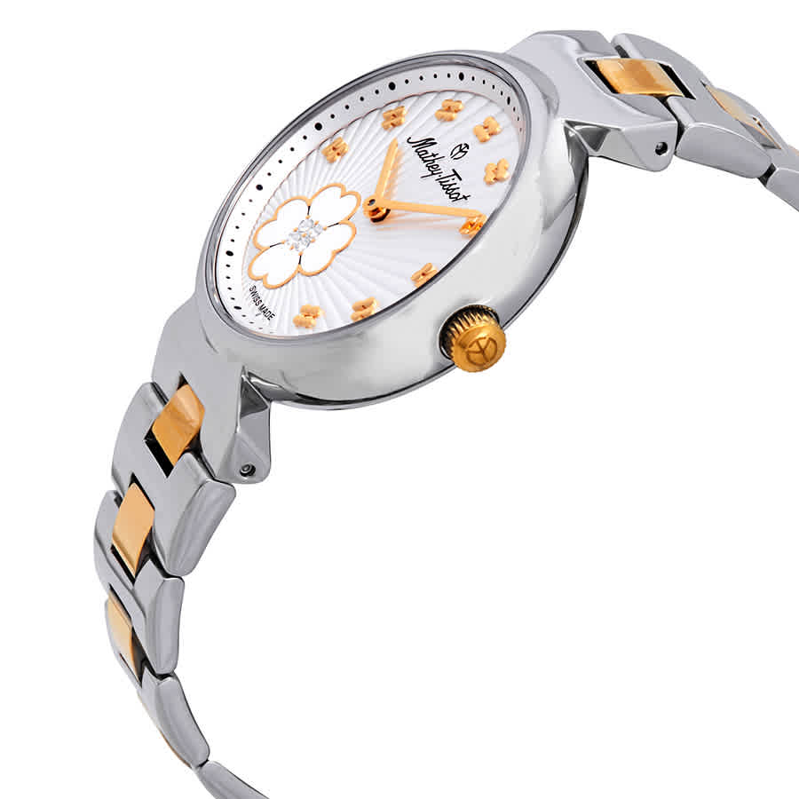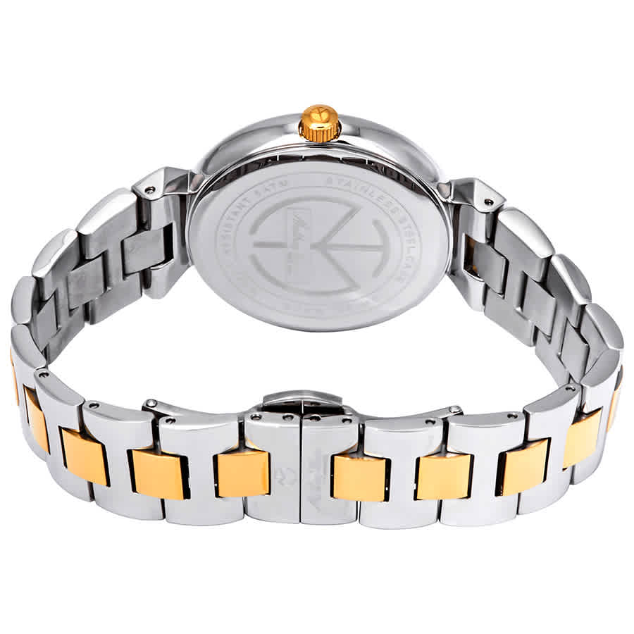 Silver-tone stainless steel case with a two-tone (silver-tone and gold-tone PVD) stainless steel bracelet. Fixed silver-tone stainless steel bezel. Silver-tone dial with gold-tone hands and index hour markers. Minute markers around...
