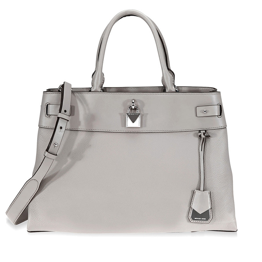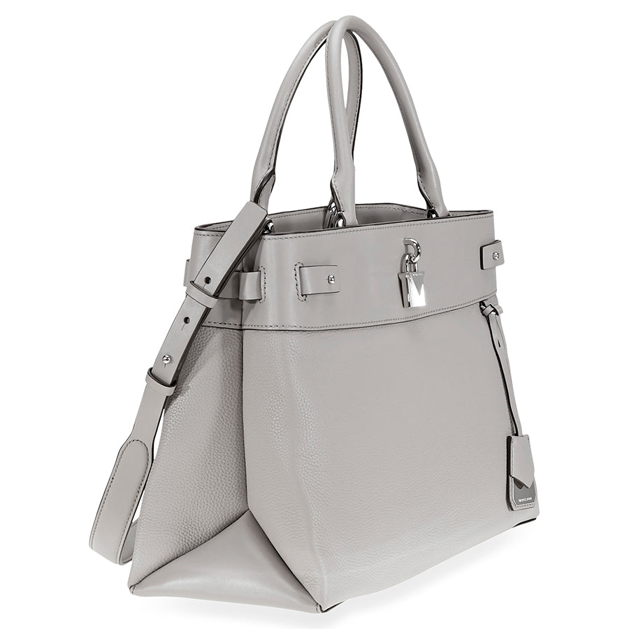 Michael Kors Gramercy Large Pebbled Leather Satchel - Pearl Grey
