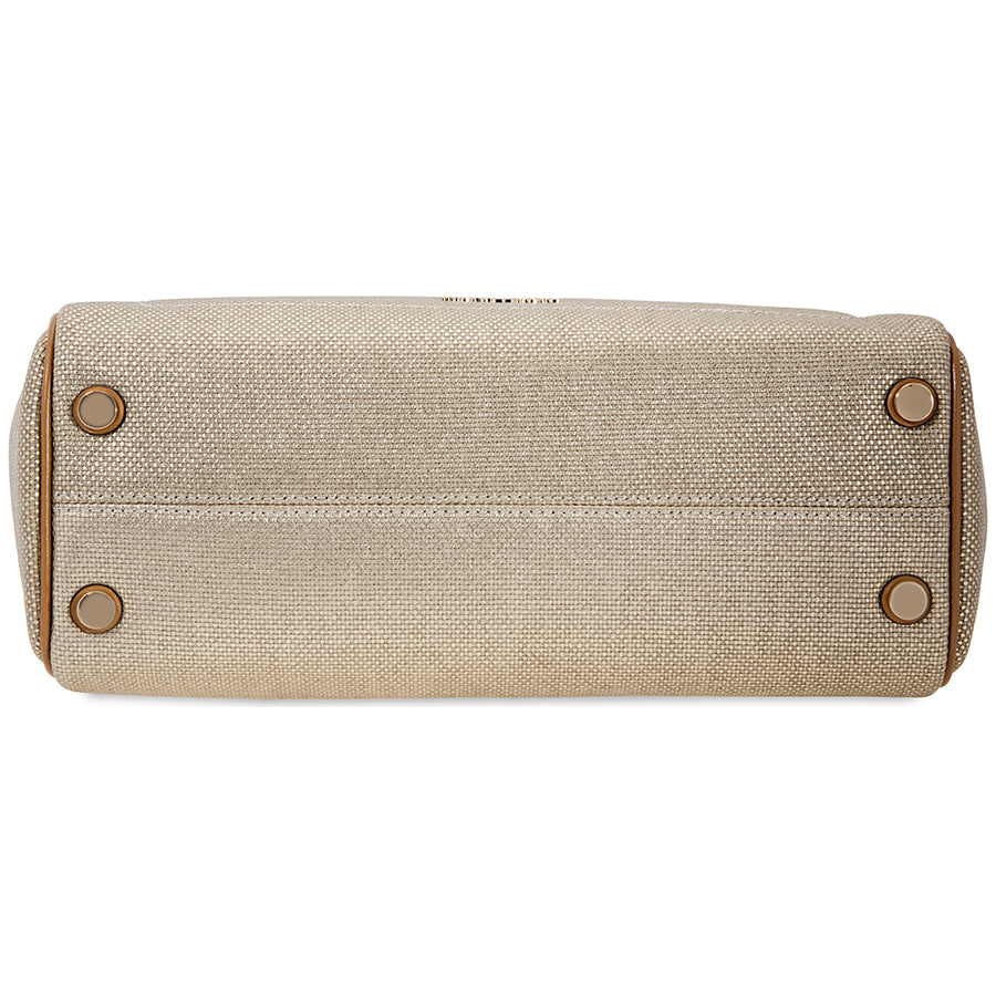 Michael Kors Isla shoulder bag in Met canvas with gold-tone hardware. This shoulder bag features 1 main compartment, wall zip pocket, 6 front slip pockets, Magnetic snap closure and 2 handles with a 8.5" drop. Dimensions: 14" W x 11.5" H x 6" D.