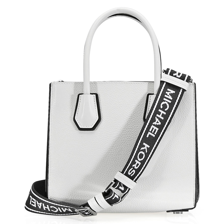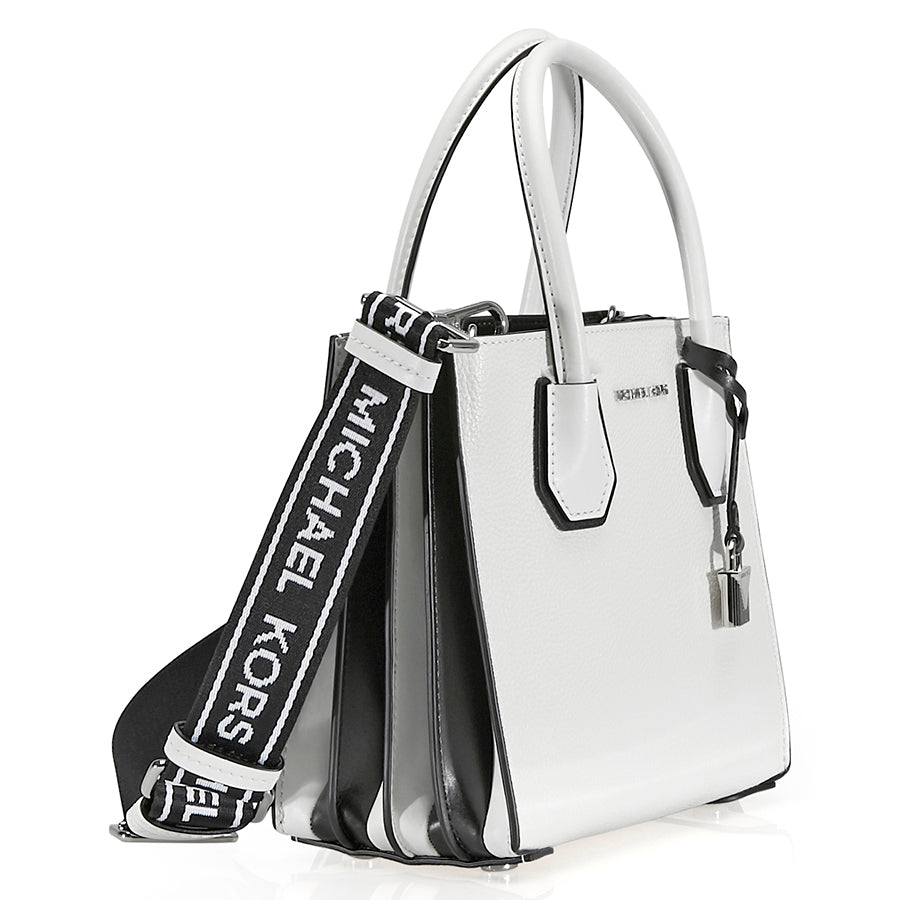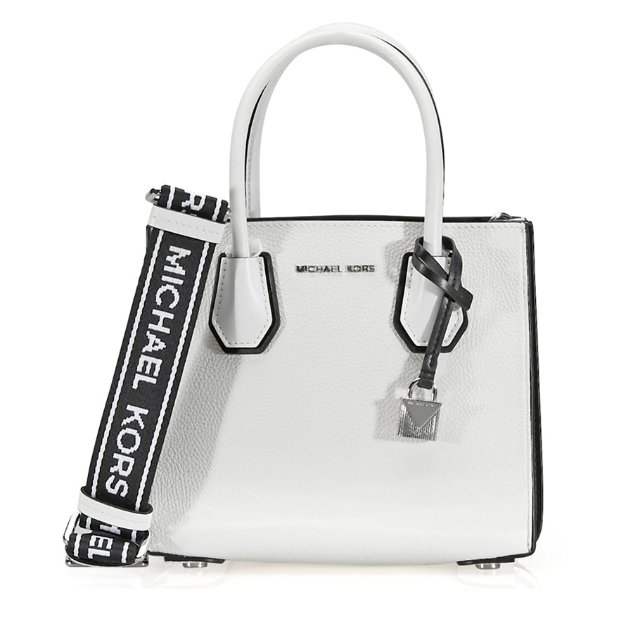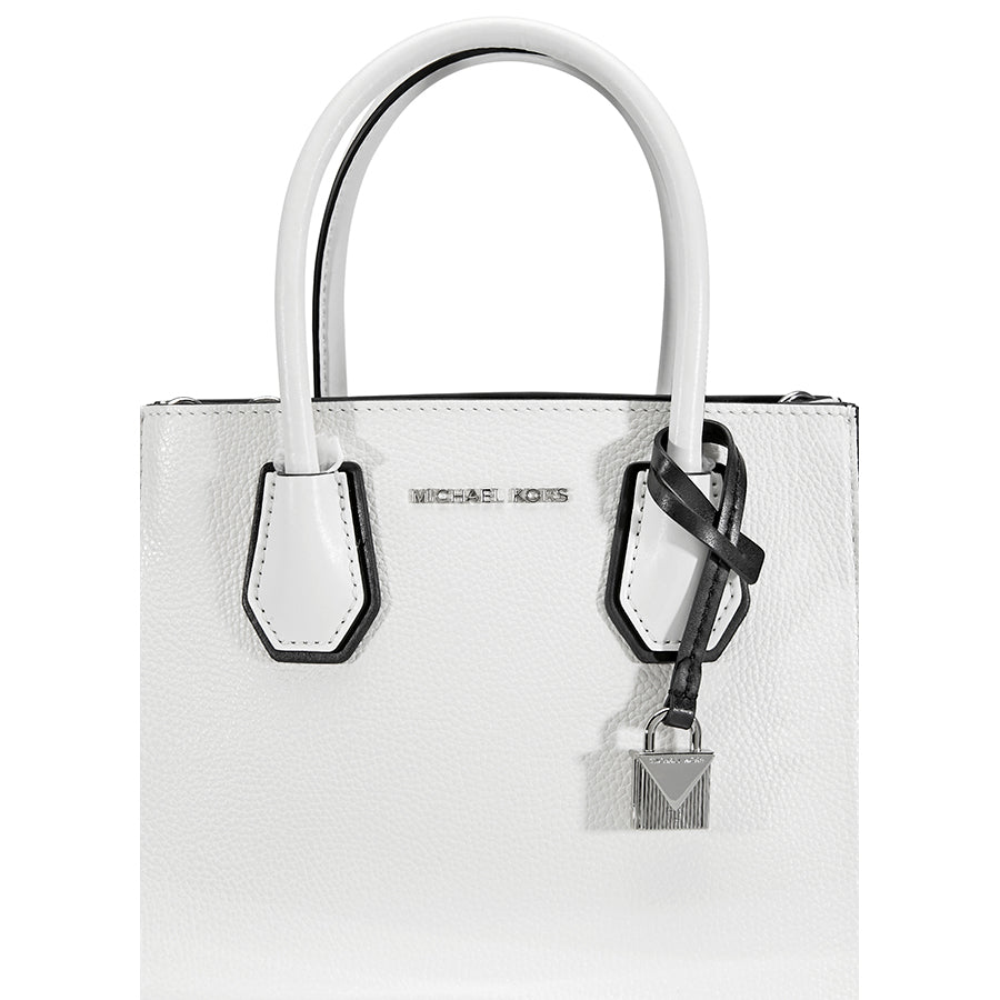 Michael Kors Mercer Pebbled Leather Messenger Bag - White / Black