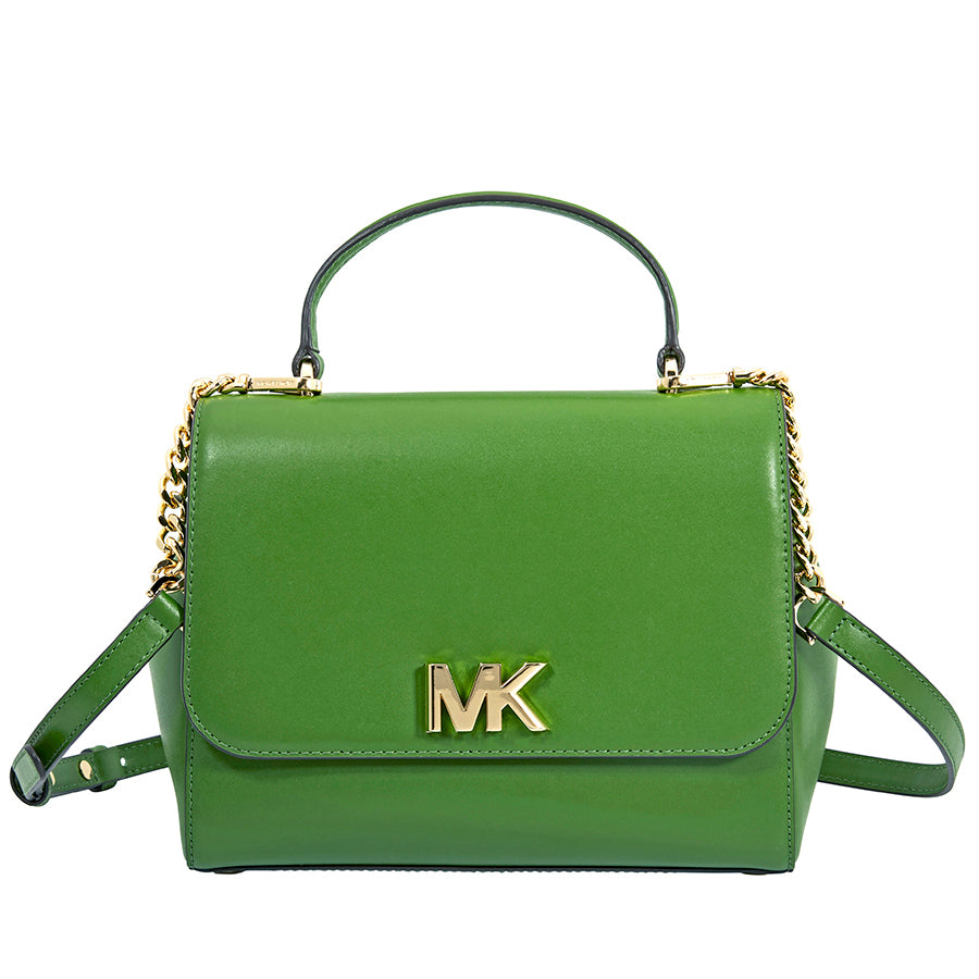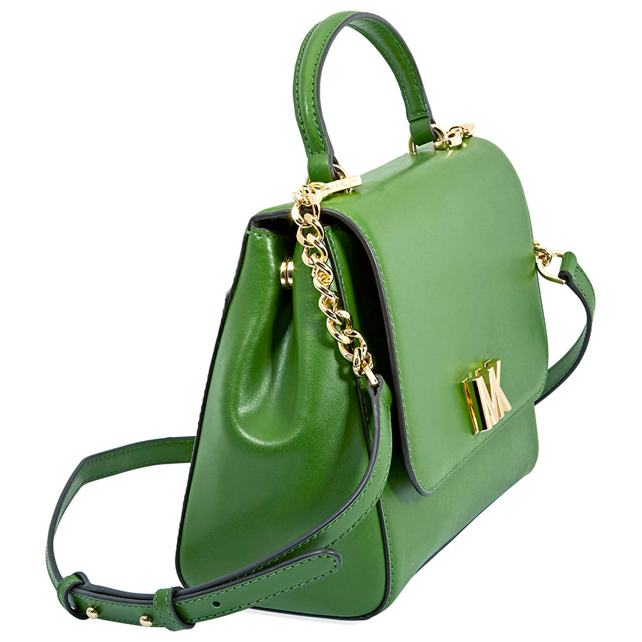 Michael Kors Mott Medium Leather Satchel- True Green