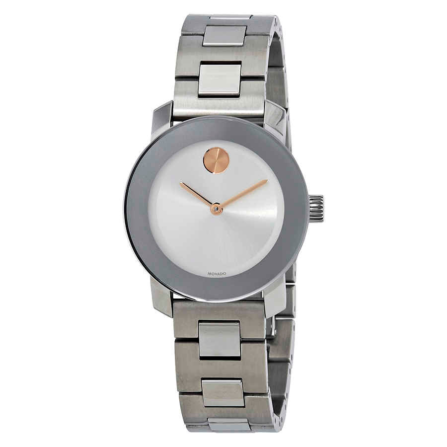 Movado Bold Silver Sunray Dial Stainless Steel Ladies Watch 3600433