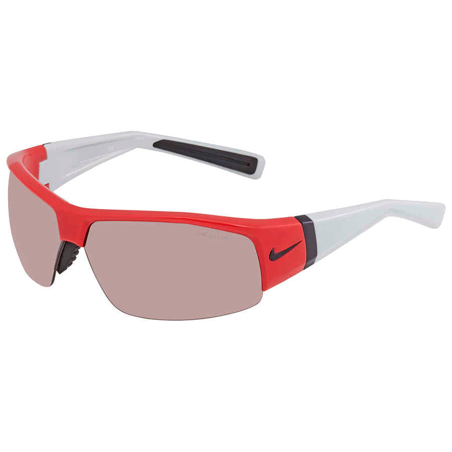 Nike Sunglasses. Series number: EV0561. Color code: 686. Shape: Wrap. Lens Width: 71 mm. Lens Bridge: 13 mm. Arm Length: 130 mm. 100% UV protection. Non-Polarized. Frame Material: Plastic. Frame Color: Pastel Red. Lenses Type: Brown Silver Mirror. UPC/EAN code: 887229369220. Nike Brown Silver Mirror Wrap Unisex Sunglasses EV0561-686.