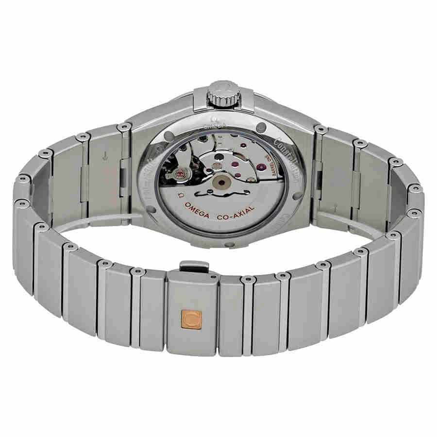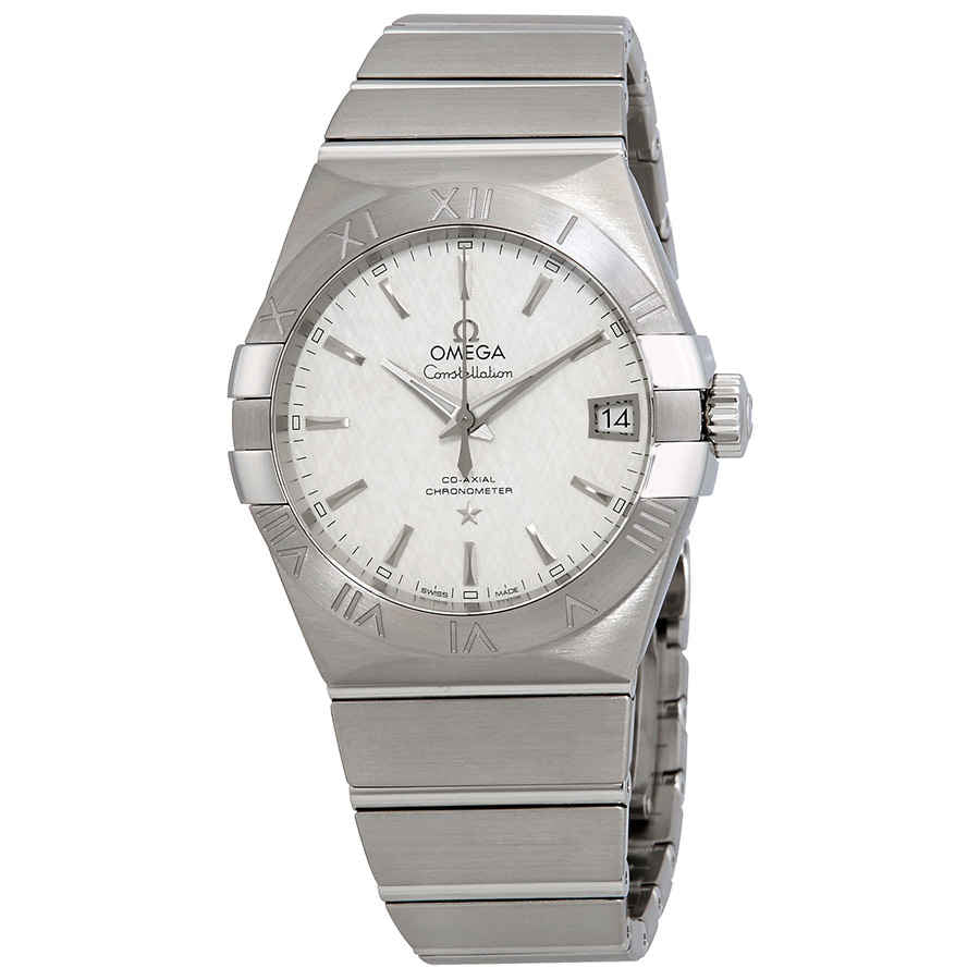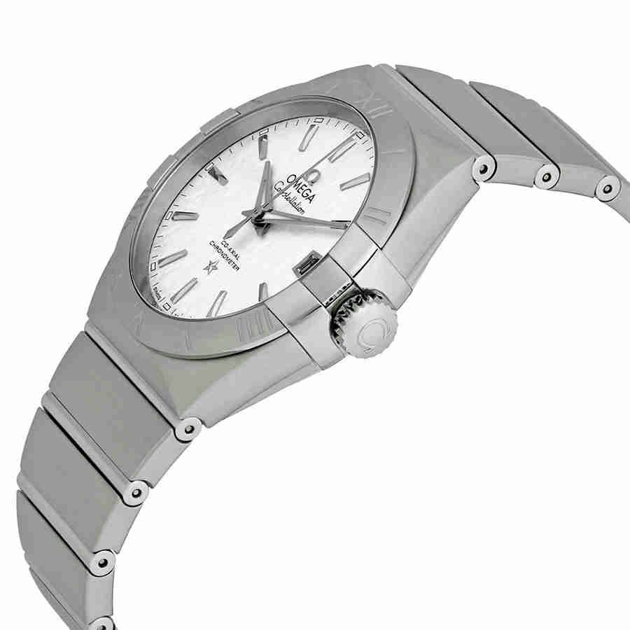 Stainless steel case with a stainless steel bracelet. Fixed stainless steel bezel. White opaline silvery dial with luminous silver-tone hands and index hour markers. Minute markers around the outer rim. Dial...