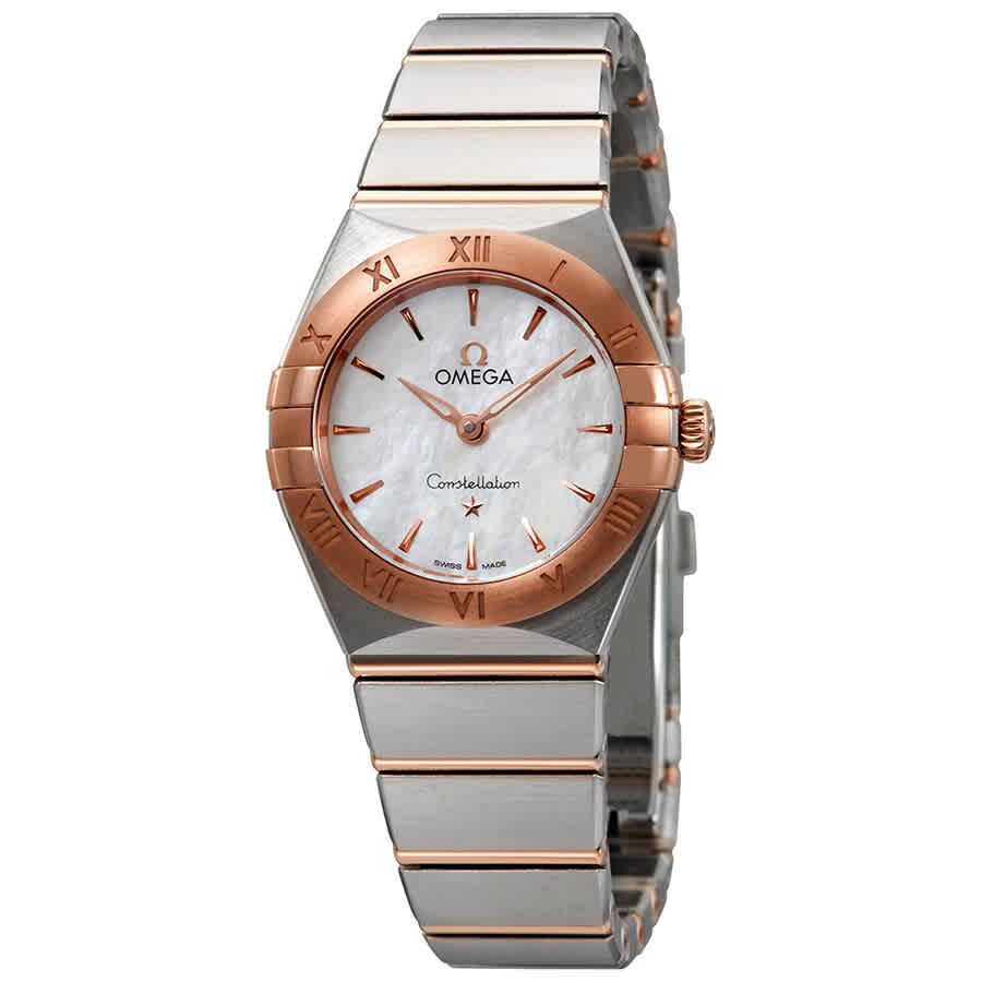 Stainless steel case with a stainless steel bracelet with 18kt sedna gold bars. Fixed 18kt sedna gold bezel. White mother of pearl dial with luminous rose gold-tone hands and index hour...