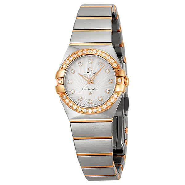 Stainless steel case with a stainless steel bracelet with 18kt rose gold bars. Fixed 18kt rose gold bezel set with diamonds. Mother of pearl dial with luminous rose gold-tone hands and...