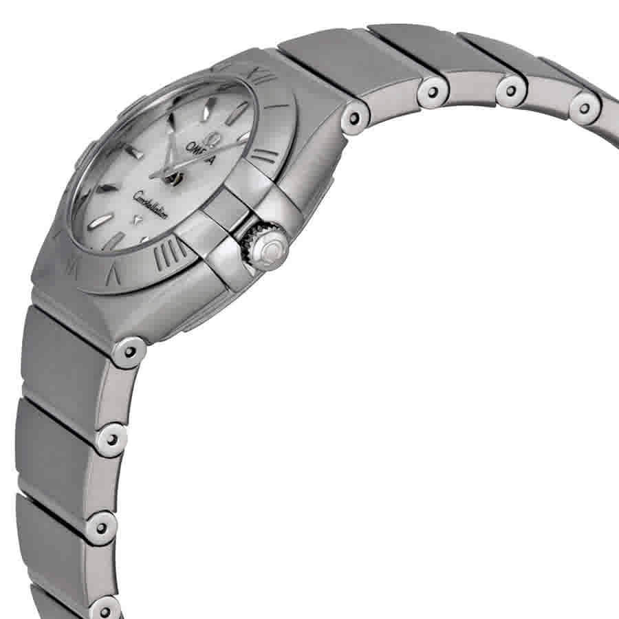 Stainless steel case with a stainless steel bracelet. Fixed stainless steel bezel. Mother of pearl dial with luminous silver-tone hands and index hour markers. Dial Type: Analog. Quartz movement. Scratch resistant...