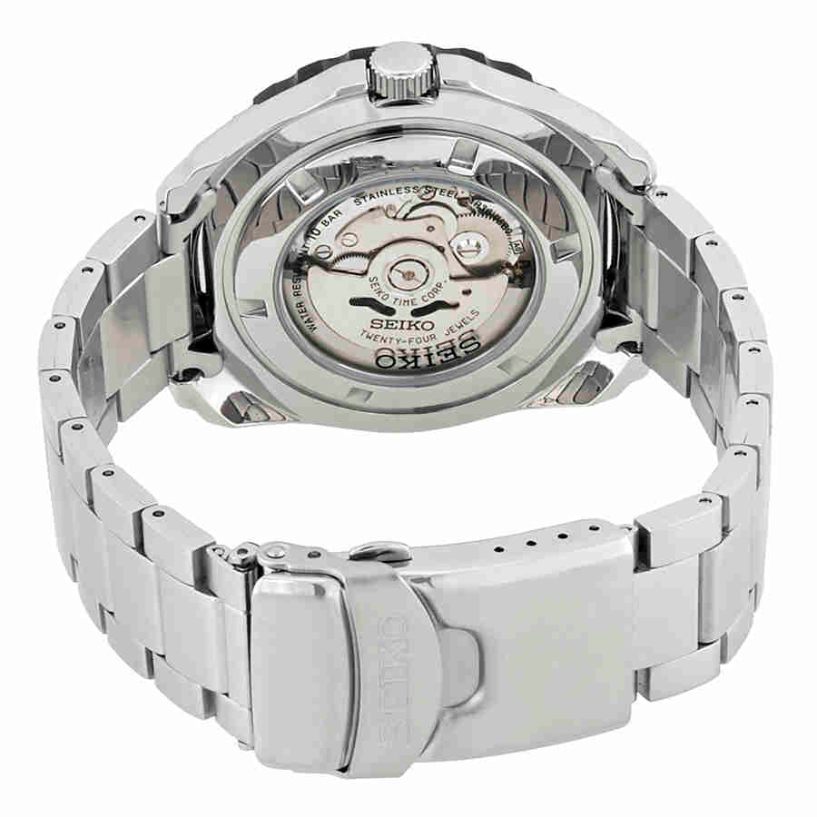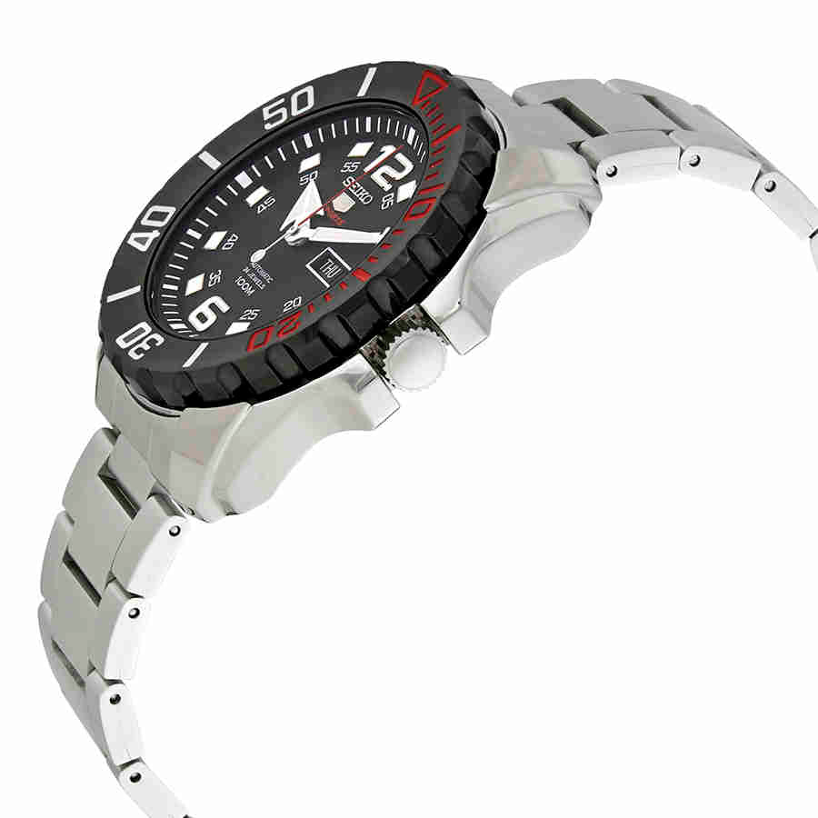 Silver-tone stainless steel case with a silver-tone stainless steel bracelet. Uni-directional rotating black ion-plated stainless steel bezel. Black dial with luminous silver-tone hands and index hour markers. Arabic numerals mark the...