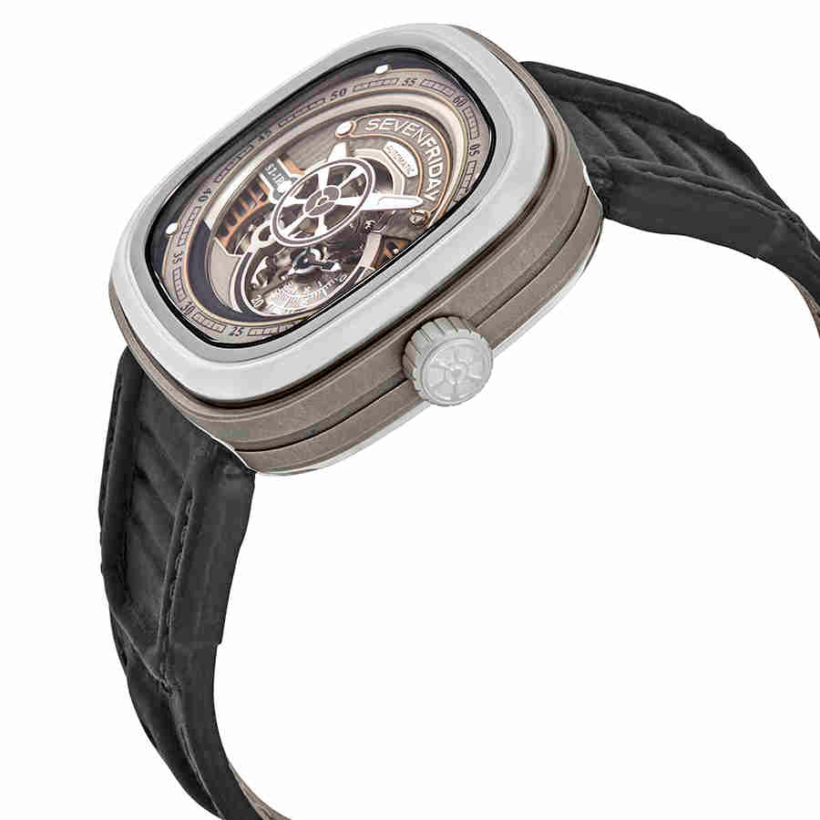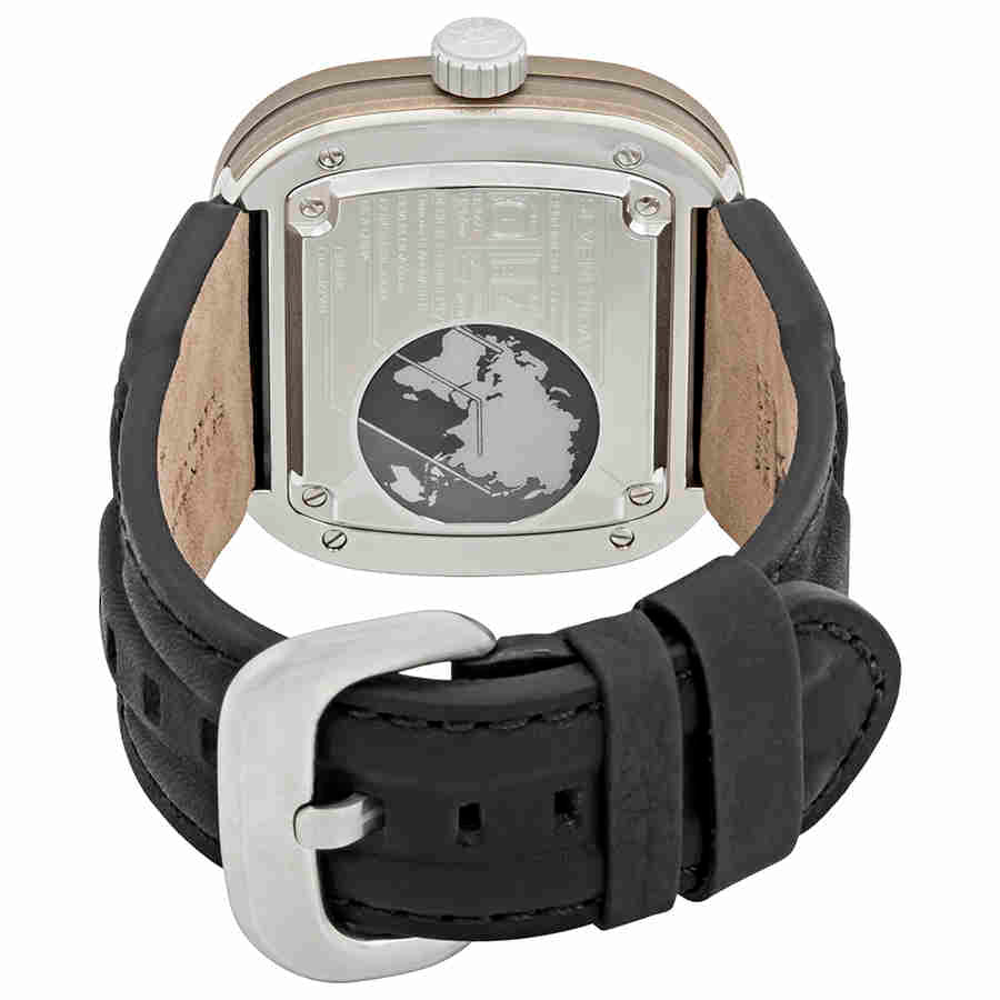 Silver-tone stainless steel case with a black leather strap. Fixed silver-tone bezel. Silver-tone dial with silver-tone hands and index hour markers. Minute markers around the outer rim. Dial Type: Analog. Luminescent...