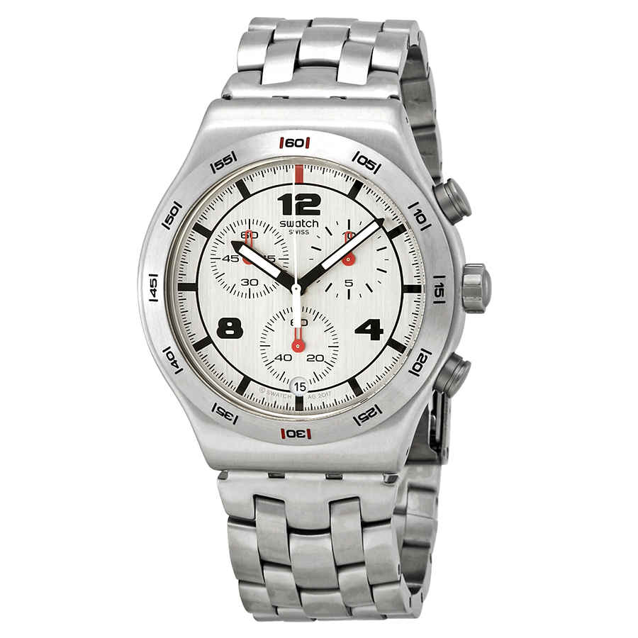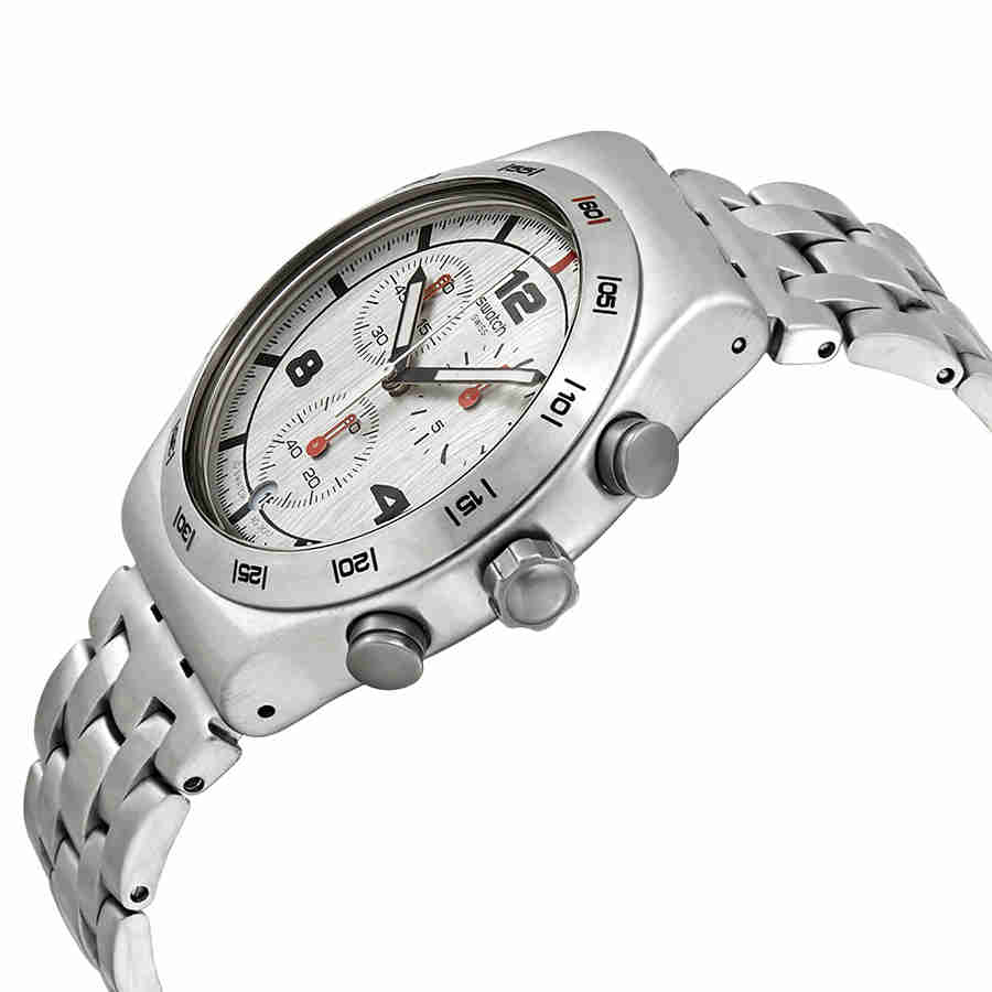 Silver-tone stainless steel case with a silver-tone stainless steel bracelet. Fixed silver-tone stainless steel bezel. Silver-tone dial with black hands and Arabic numeral hour markers. Minute markers on bezel. Dial Type:...