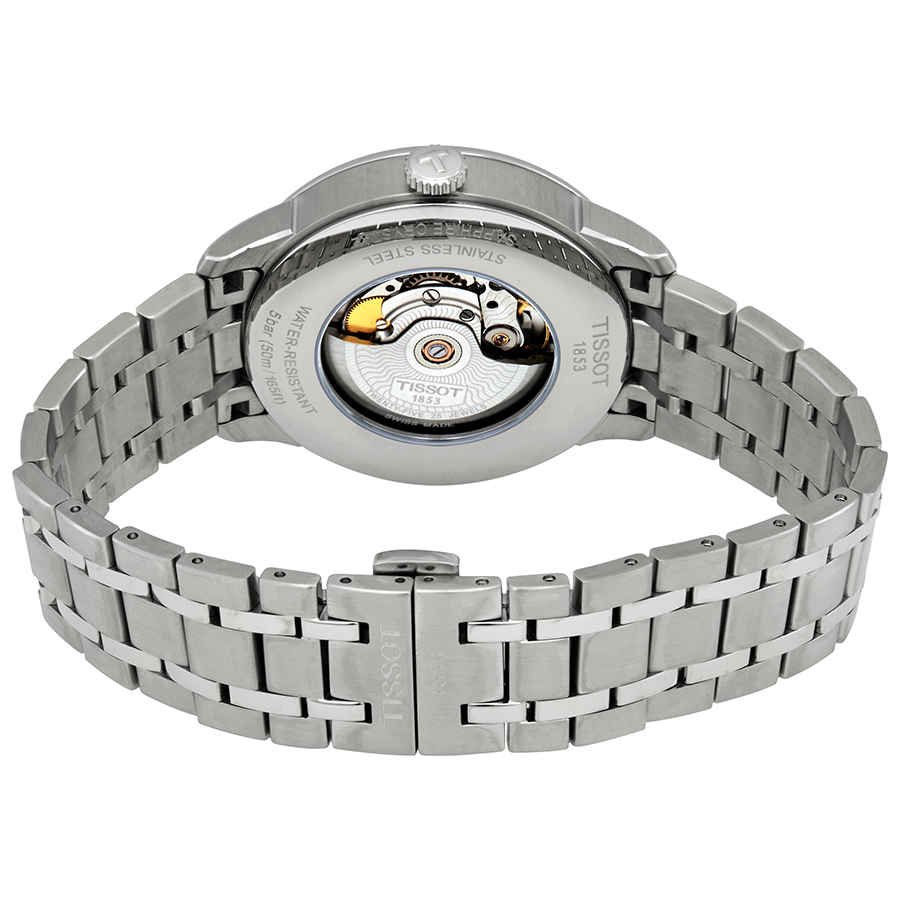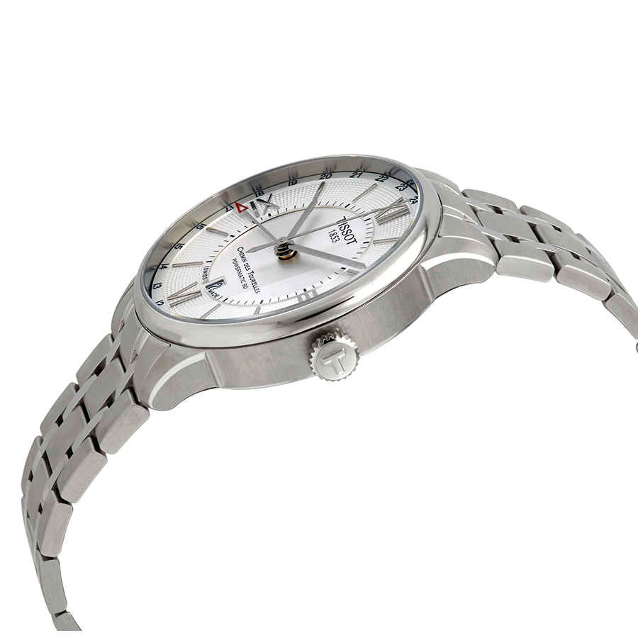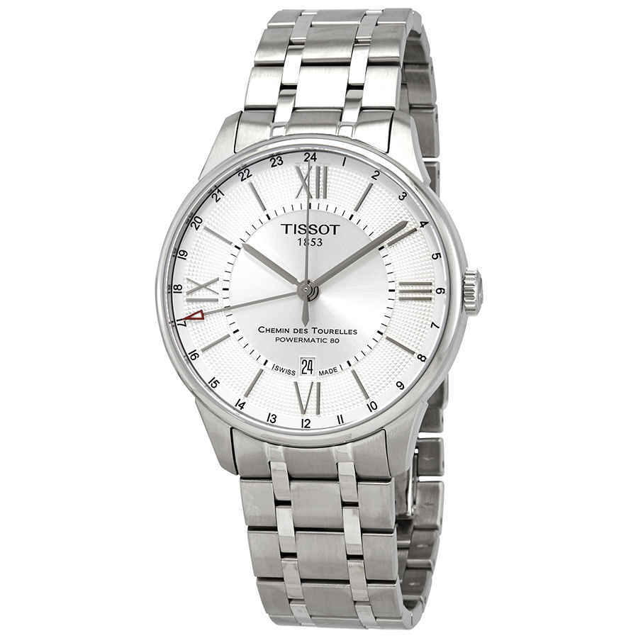 Silver-tone stainless steel case with a silver-tone stainless steel bracelet. Fixed silver-tone stainless steel bezel. Silver dial with silver-tone hands and index-Roman numerals hour markers. Minute scale around the inner rim....